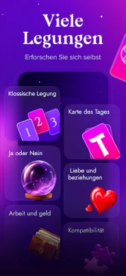 Ob Sie Antworten auf Fragen zu Herzensangelegenheiten, beruflichen Pfaden oder persönlichem Wachstum suchen, diese Tarotkartenlegungs-App ist Ihr vertrauensvolles Portal zu tieferer Selbsterkenntnis und spirituellem Erwachen. Sie lädt Sie ein, die mystischen Aspekte der Tarotkarten zu erforschen und ihr immenses Potenzial zu nutzen, um Ihre innere Intuition zu wecken und eine transformative Reise zu beginnen.