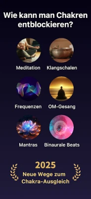 Begib dich auf eine transformative Reise durch deine sieben primären Energiezentren, vom erdenden Wurzelchakra bis zum erleuchtenden Kronenchakra. Chakra Healing führt dich mit sorgfältig konzipierten Meditationen an jedes einzelne Chakra heran, die darauf abzielen, spezifische Energien zu aktivieren und Disharmonien auszugleichen. Erlebe eine einzigartige Body-Scan-Meditation, die mit positiven Affirmationen angereichert ist und dir hilft, die tiefen Verbindungen und das Zusammenspiel zwischen deinen Chakren zu verstehen und zu spüren, um so ein harmonisches Fließen deiner Lebensenergie zu fördern.