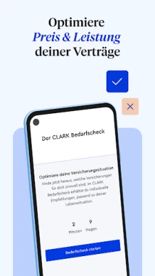 Die Welt der Versicherungen kann undurchsichtig wirken. CLARK verwandelt diese Komplexität in Klarheit und Kontrolle, direkt in Ihrer Hand. Verwalten, optimieren und überprüfen Sie Ihre gesamte Versicherungssituation mühelos mit CLARK, dem bewährten Partner für über eine halbe Million Kund:innen. In nur wenigen Minuten sind Sie startklar, um einen umfassenden Überblick über Ihre Verträge zu erhalten und Ihr finanzielles Sicherheitsnetz aktiv zu gestalten – jederzeit und überall, bequem über die App oder auf clark.de.