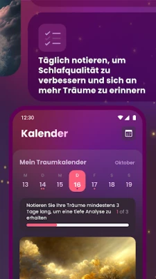 Tauchen Sie tiefer in die Bedeutungen hinter Ihren Traumbildern ein. "Dreams Book and Interpretation" bietet dafür ein umfassendes Traumlexikon und intuitive Interpretationswerkzeuge. Ob Sie von majestätischen Flügen träumen, unbekannte Pfade beschreiten oder sich Ihren tiefsten Ängsten stellen – unsere App entschlüsselt die verborgene Symbolik und liefert Interpretationen, die resonant mit Ihren persönlichen Erfahrungen sind. Das Verständnis der Botschaften in Ihren Träumen kann Ihnen tiefgreifende Einblicke in Ihre Emotionen, unerfüllten Wünsche und die Muster Ihres Lebens eröffnen. Darüber hinaus ermöglicht die detaillierte Kalenderfunktion, Ihre aufgezeichneten Träume mit präzisen, fachkundigen Analysen zu versehen, um komplexe Trauminhalte zu zergliedern und verborgene Wahrheiten über Ihre Beziehungen, Ziele und Ihr emotionales Wohlbefinden zu enthüllen.