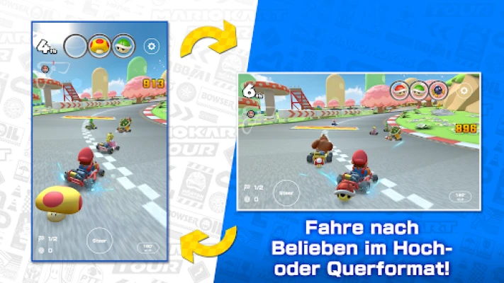 Willkommen bei Mario Kart Tour, dem nächsten großen Abenteuer, das die renommierte Rennserie von Nintendo auf Ihr Smart-Gerät bringt! Begleiten Sie Mario, Luigi und all Ihre Lieblingscharaktere auf einer spektakulären Welttournee. Messen Sie sich auf brandneuen Strecken, die von ikonischen Städten rund um den Globus inspiriert sind, und erleben Sie nostalgische Momente auf liebevoll wiederbelebten klassischen Mario Kart-Kursen. Regelmäßige, zweiwöchige Tour-Saisons sorgen dabei für ständige Abwechslung, frische Herausforderungen und überraschende, lokale Varianten Ihrer Helden.