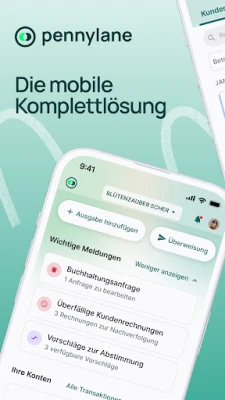 Erweitern Sie Ihre finanzielle Agilität mit dem Pennylane Geschäftskonto. Genießen Sie kostenlose, anpassbare Mastercard-Karten – virtuell oder physisch – und grenzenlose kostenfreie SEPA-Überweisungen. Mit einer deutschen IBAN und der Sicherheit eines von ACPR und BaFin zugelassenen Instituts sind Ihre Gelder optimal geschützt. Begleichen Sie bis zu 400 Eingangsrechnungen mit einem einzigen Klick, wobei Abstimmung und Kontierung automatisch erfolgen. Nie wieder die Suche nach Belegen: Eine mobile Benachrichtigung informiert Sie sofort über jede Transaktion mit Ihrer Geschäftskonto-Karte. Die intuitive mobile App von Pennylane hält Sie stets auf dem Laufenden: Verwalten Sie Überweisungen und Karten, laden Sie Rechnungen und Spesen hoch, kategorisieren Sie Transaktionen, erstellen Sie Kundenrechnungen und verfolgen Sie Liquidität sowie KPIs – alles bequem von unterwegs. Eine direkte Kommunikationsbrücke über Kommentare und Benachrichtigungen erleichtert zudem den Austausch mit Ihrem Team und Steuerberater.