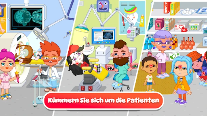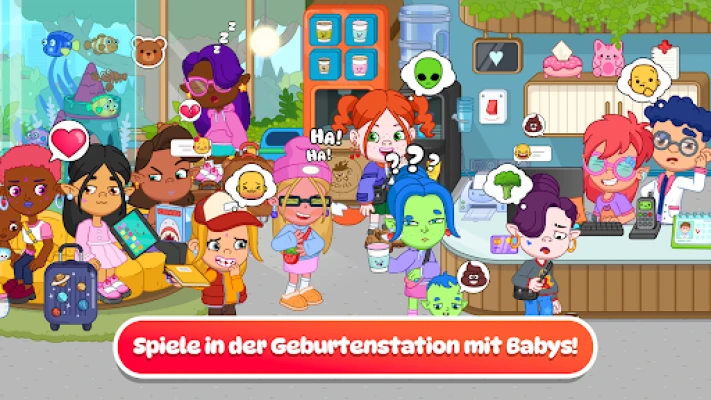 Tauche ein in die vielfältigen Bereiche der Stadt: Erlebe den geschäftigen Alltag im Krankenhaus, wo du als Arzt oder Pfleger tätig sein oder selbst behandelt werden kannst, mit Röntgenapparaten und therapeutischen Spielen, die alle interaktiv gestaltet sind. Besuche das herzerwärmende Kinderkrankenhaus, wo du Neugeborene liebevoll versorgst, wiegst und tröstest und dabei Momente voller Empathie und Freude kreierst. Oder gestalte das Zuhause deiner Avatare: Koche köstliche Mahlzeiten, dekoriere Räume oder feiere ausgelassene Partys – das Alltagsleben wird hier zum aufregenden Rollenspiel.