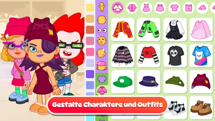 Mit dem vielseitigen Avatar-Editor von Pepi City erweckst du deine Charaktere zum Leben. Gestalte Familienmitglieder, Freunde und sogar die Kleinsten mit unzähligen Outfits und Stilen, die jeder Figur eine unverwechselbare Persönlichkeit verleihen. Im quirligen Babyladen findest du zudem eine riesige Auswahl an Kleidung, Spielzeug und Accessoires, um deine Baby-Avatare individuell auszustatten und jedes Shopping-Erlebnis in eine fantasievolle Modenschau zu verwandeln. Pepi City ist ein sicherer und farbenfroher Raum, in dem Kinder ihrer Kreativität freien Lauf lassen und unzählige Geschichten erfinden können.